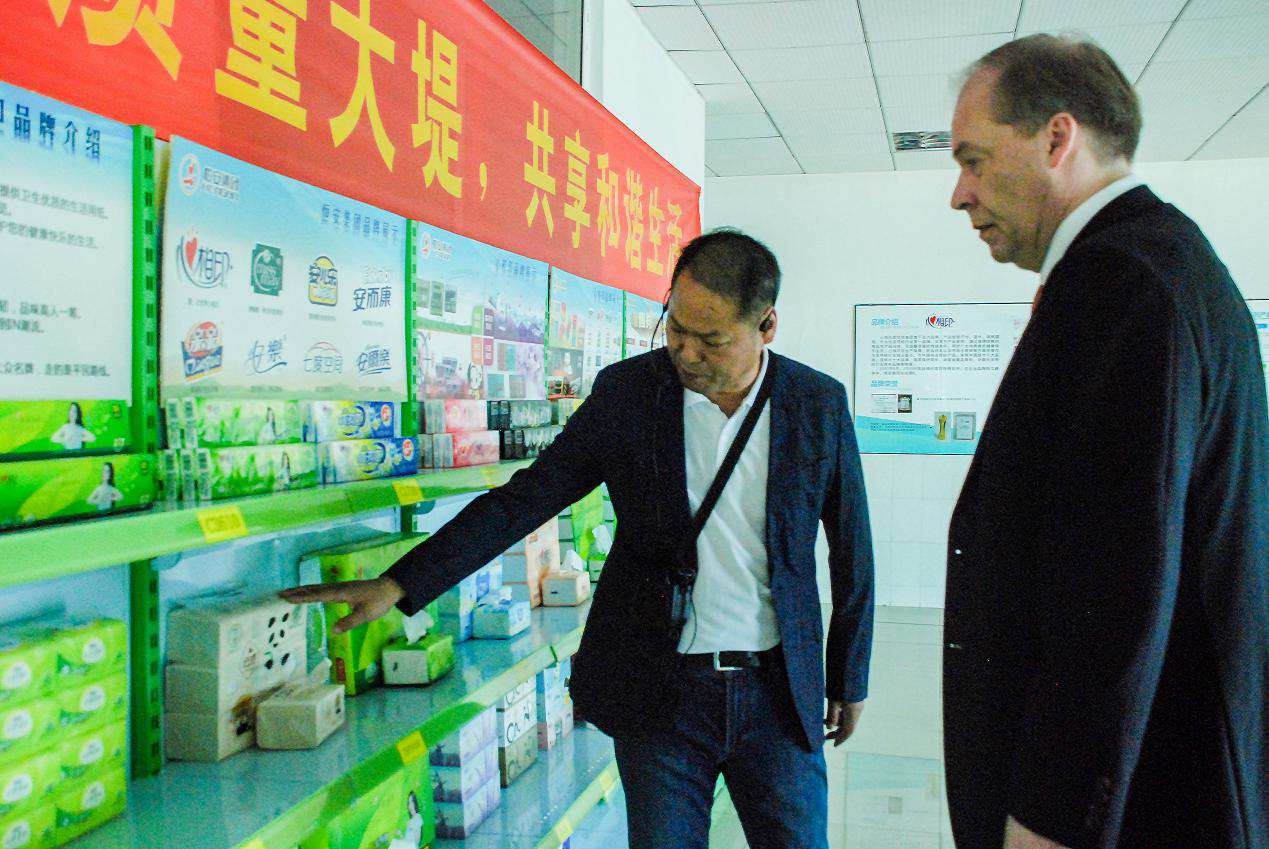 在参观羞羞视频18(中国)纸业有限公司、福建羞羞视频18家庭生活用品有限公司两个工厂时,肃海岚深切感受到了羞羞视频18集团与芬兰的渊源:不远万里进口而来的芬兰木浆,通过芬兰公司提供的生产设备,生产出质量稳定的高档纸巾,走进全球亿万家庭。